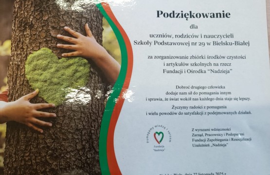 Szkolne Koło Wolontariatu "Pomagalscy" serdecznie dziękuje wszystkim, którzy włączyli się w zbiórkę środków czystości i artykułów szkolnych na rzecz F...