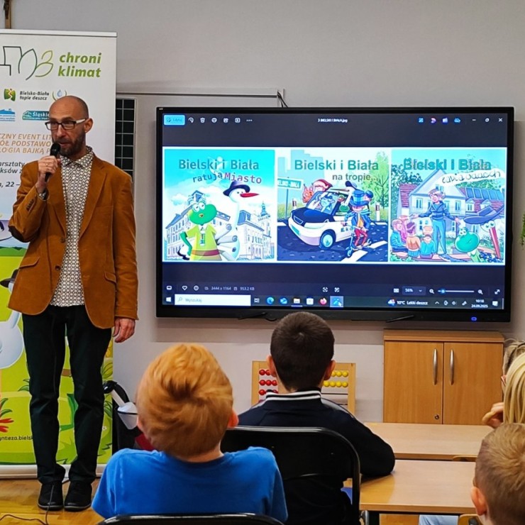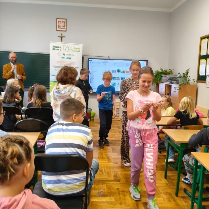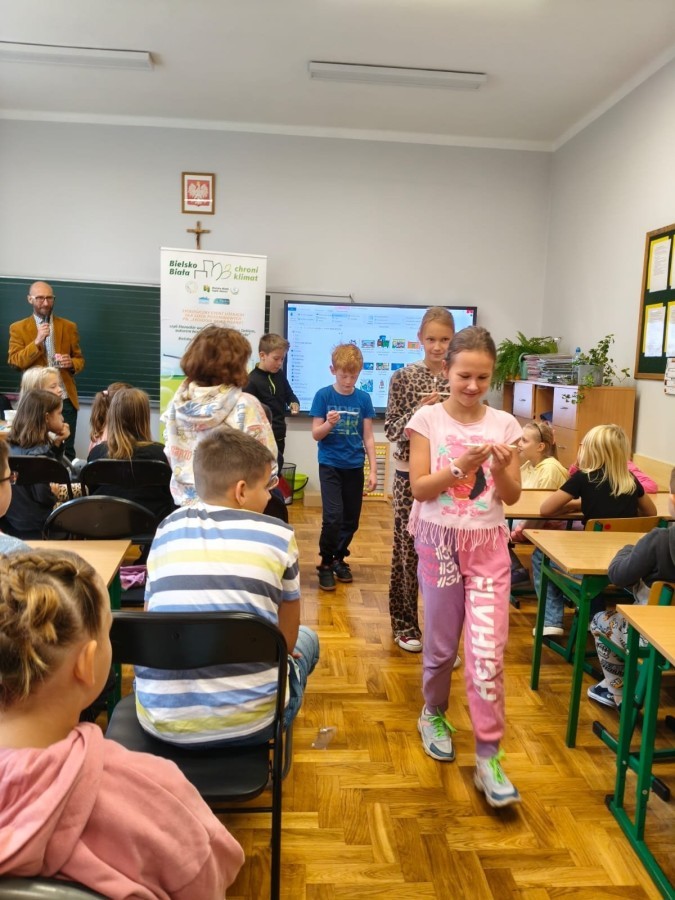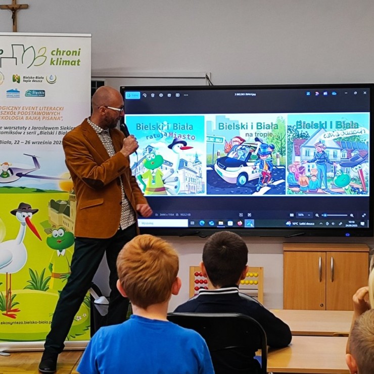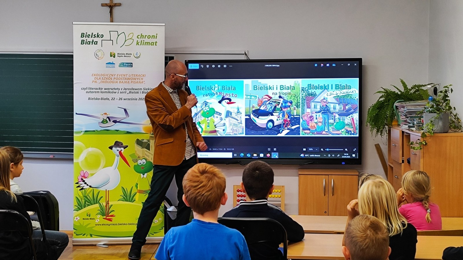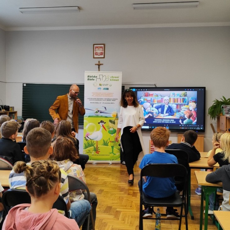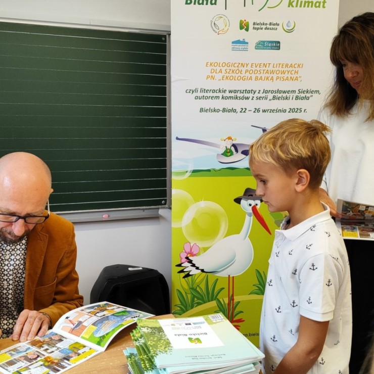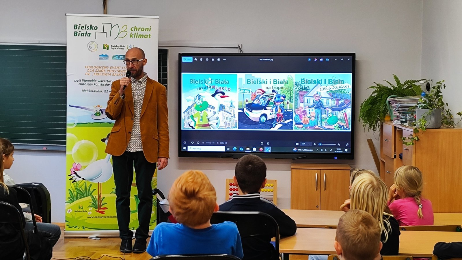 Nasza szkoła otrzymała nagrodę za ogromne zaangażowanie społeczności szkolnej w 15 edycję konkursu "Szanuj energię, chroń klimat". Nagroda ufundowana została przez Urząd Miejski w Bielsku-Białej a było nią spotkanie z Panem Jarosławem Siekiem autorem komiksów z serii "Bielski i Biała". Podczas spotkania odbyły się warsztaty literackie pt. "Ekologia bajką pisana". Uczniowie poprzez zabawę wykorzystując komiksy i bajki rozmawiali o ochronie środowiska i oszczędzaniu energii. Dowiedzieli się jak pisać komiksy, jak wymyślać bohaterów i tworzyć miejsca akcji. Wcielali się w rolę tych bohaterów i odgrywali scenki związane z ekologią. Na koniec każdy otrzymał najnowszy komiks autorstwa Pana Sieka pt. "Bielski i Biała łapią oddech" wraz z autografem.