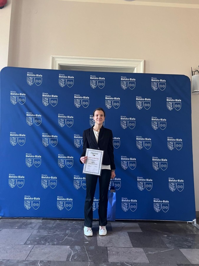 Nadia Jankowska z 7a zajęła 2 miejsce w międzyszkolnym „Konkursie Wiedzy o Bielsku-Białej. Dziedzictwo Kulturowe Regionu". Otrzymała dyplom, gratulacje i nagrodę z rąk Prezydenta Bielska-Białej.