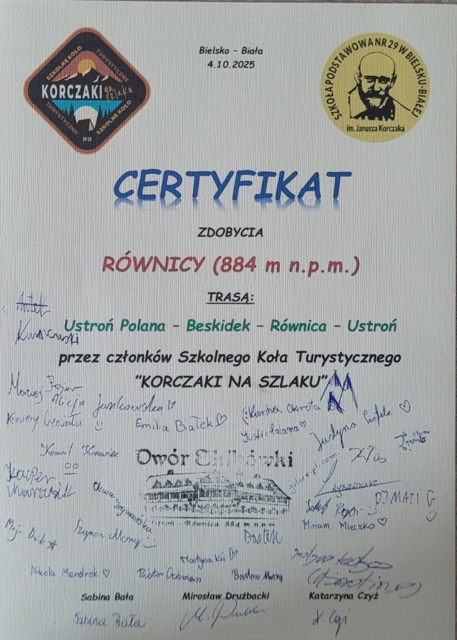 4 października z dworca PKS autobusem🚍 udaliśmy się do Ustronia. Szlakiem zielonym i niebieskim przez Beskidek zdobyliśmy kolejny szczyt Beskidu Śląskiego - RÓWNICĘ 884 m n.p.m.⛰Po drodze na szczyt cała grupa była zaangażowana w zbieranie grzybów 🍄 Po zrobieniu pamiątkowych zdjęć📸 zeszliśmy do schroniska, gdzie raczyliśmy się przysmakami tamtejszej kuchni🍲🥘🌮. Wracając czerwonym szlakiem do centrum USTRONIA nie mogło zabraknąć słodkiego przystanku na lody 🍦🍨🧁. Zmęczeni lecz bardzo zadowoleni😃😃😃 pociągiem 🚂o godz.16 dotarliśmy do KOMOROWIC. Już planujemy kolejną wyprawę. Do zobaczenia na szlaku 👍⛰