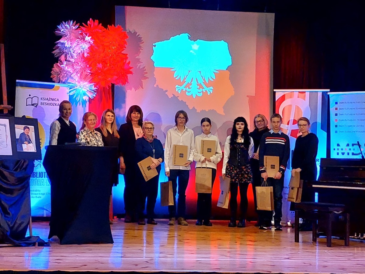 25 listopada 2025 r. w Dom Kultury Komorowice odbyło się podsumowanie konkursów: IV edycji Dyktanda im. Janiny Lepianki oraz Międzyszkolnego Konkursu Historyczno-Patriotycznego. Nagrody uroczyście wręczyła p. Urszula Szabla - Radna Rady Miejskiej.