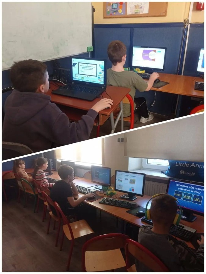 W klasach 1-3 odbyły się zajęcia poświęcone zasadom bezpiecznego poruszania się w sieci, podczas których dzieci uczyły się, na co zwracać szczególną uwagę oraz jakich zachowań unikać. Po części teoretycznej uczniowie przygotowali w grupach kreatywne plakaty. Prace te zostały zaprezentowane na forum klas, a później ozdobiły szkolne korytarze, promując bezpieczeństwo w Internecie wśród całej społeczności uczniowskiej.