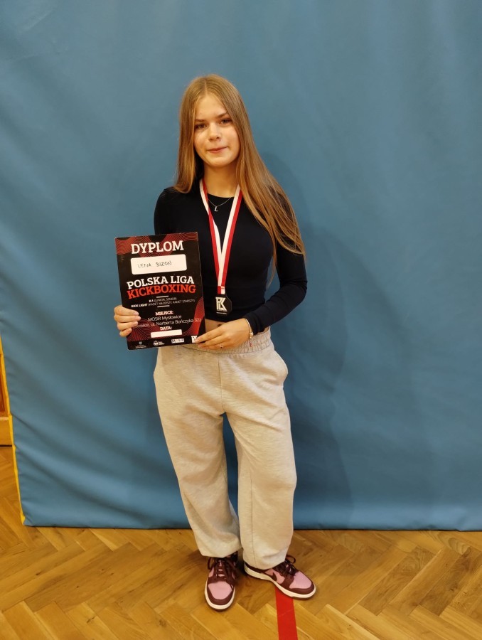 20 września w Mysłowicach odbyły się zawody Polskiej ligi kickboxingu w kategorii kick-light kadet starszy -55 kg. Srebrny medal zdobyła nasza uczennica Lena Bizoń z klasy 8 a. BRAWO !!!