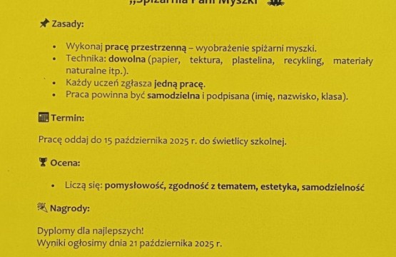 Zapraszamy uczniów klas 1-3 do wzięcia udziału w konkursie plastycznym "Spiżarnia pani Myszki".