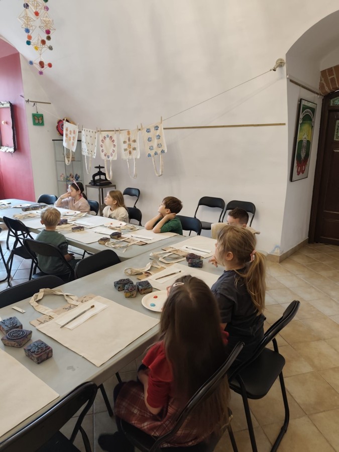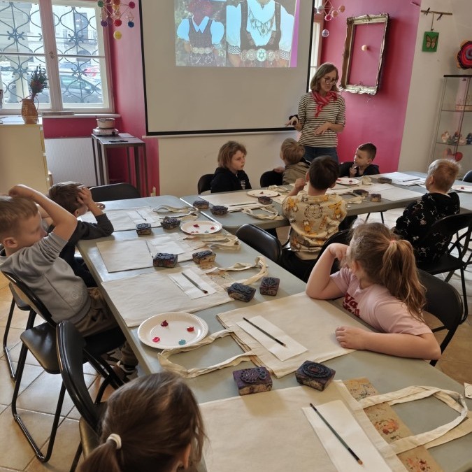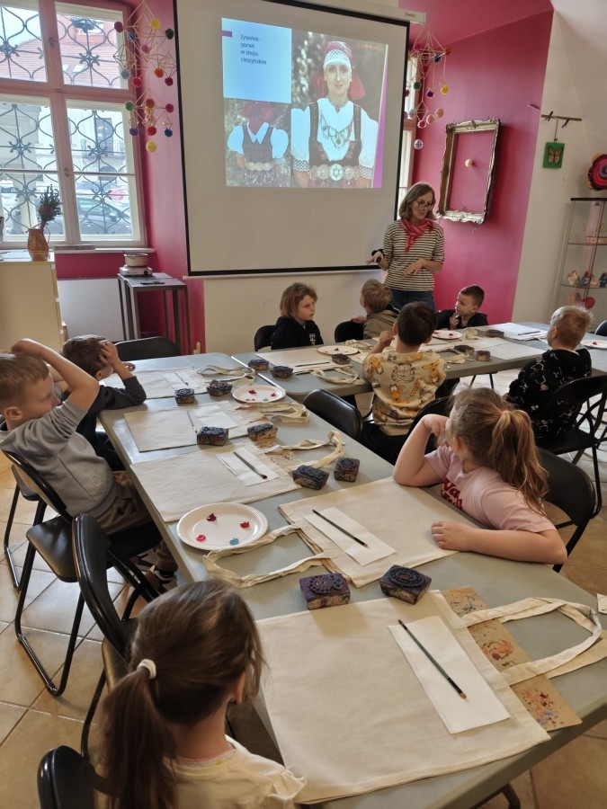 Klasa 1b wybrała się do Zamku Książąt Sułkowskich na warsztaty " Etno- odbicia- torba na zakupy", które były poświęcone historii hoczków. Uczniowie najpierw zapoznali się z bogatą kolekcją zbiorów Muzeum oraz różnymi technikami ich wytwarzania. W części praktycznej zaprojektowali kompozycje na torbie według własnego wzoru, w oparciu o dostępne stemple inspirowane hoczkami 🙂