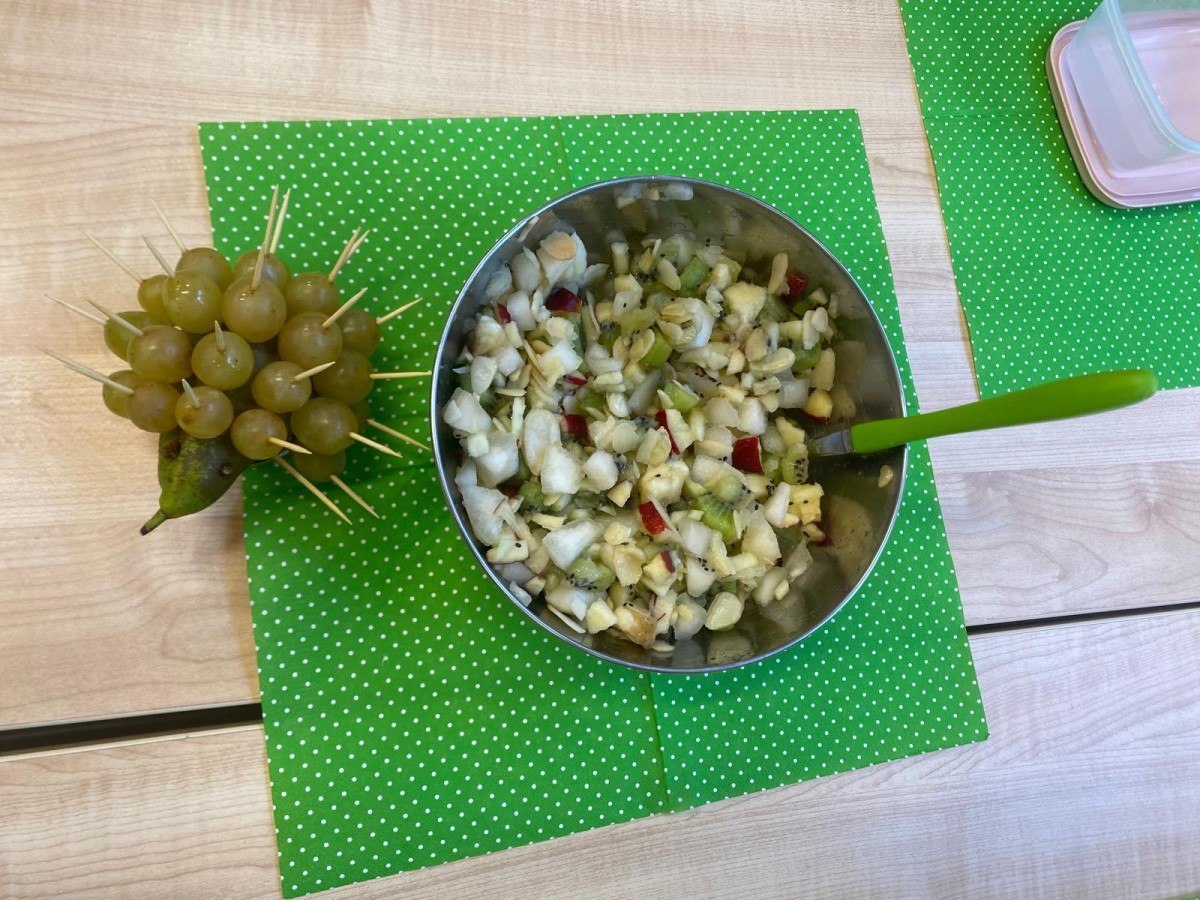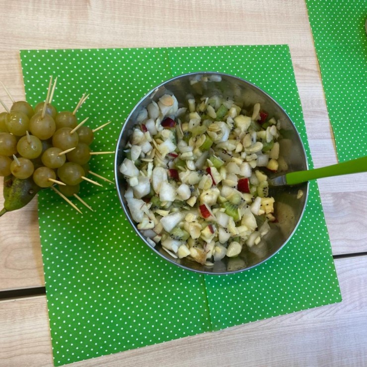 Klasa 2 b wykonała przepyszną sałatkę owocową, której głównym składnikiem było kiwi. Czy wiecie, że zjadając jeden taki owoc, zapewniacie sobie dzienną porcję witamy C? Zajadajmy zatem kiwi i budujmy odporność w tym deszczowym, jesiennym sezonie 🤗.