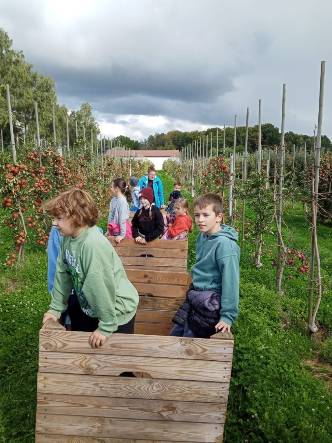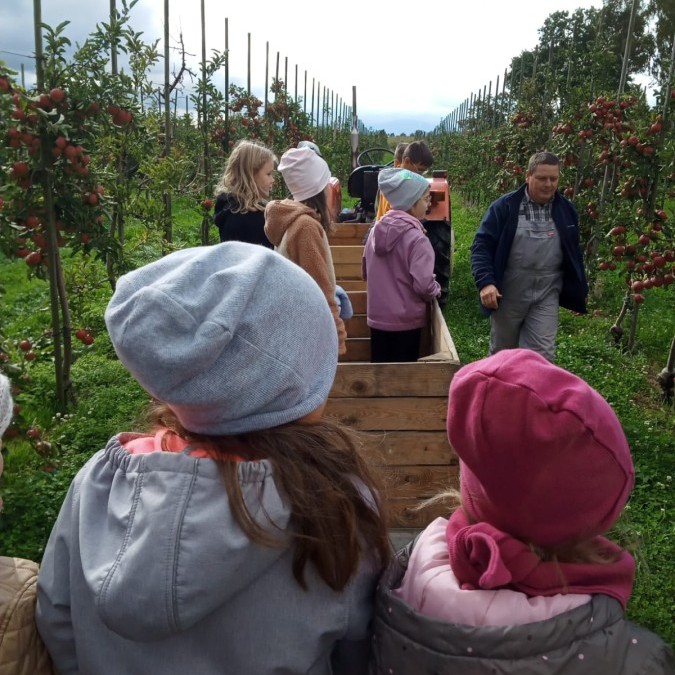Klasa 2d wybrała się na wesołą wycieczkę do sadu w Mazańcowicach. Uczniowie mieli okazję zobaczyć, jak rosną owoce, poznać pracę sadowników i... spróbować pysznych jabłek prosto z drzewa! Był czas na zabawę, naukę i wspólne zdjęcia - dzień pełen uśmiechów i owocowych przygód.
