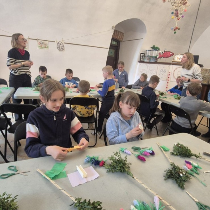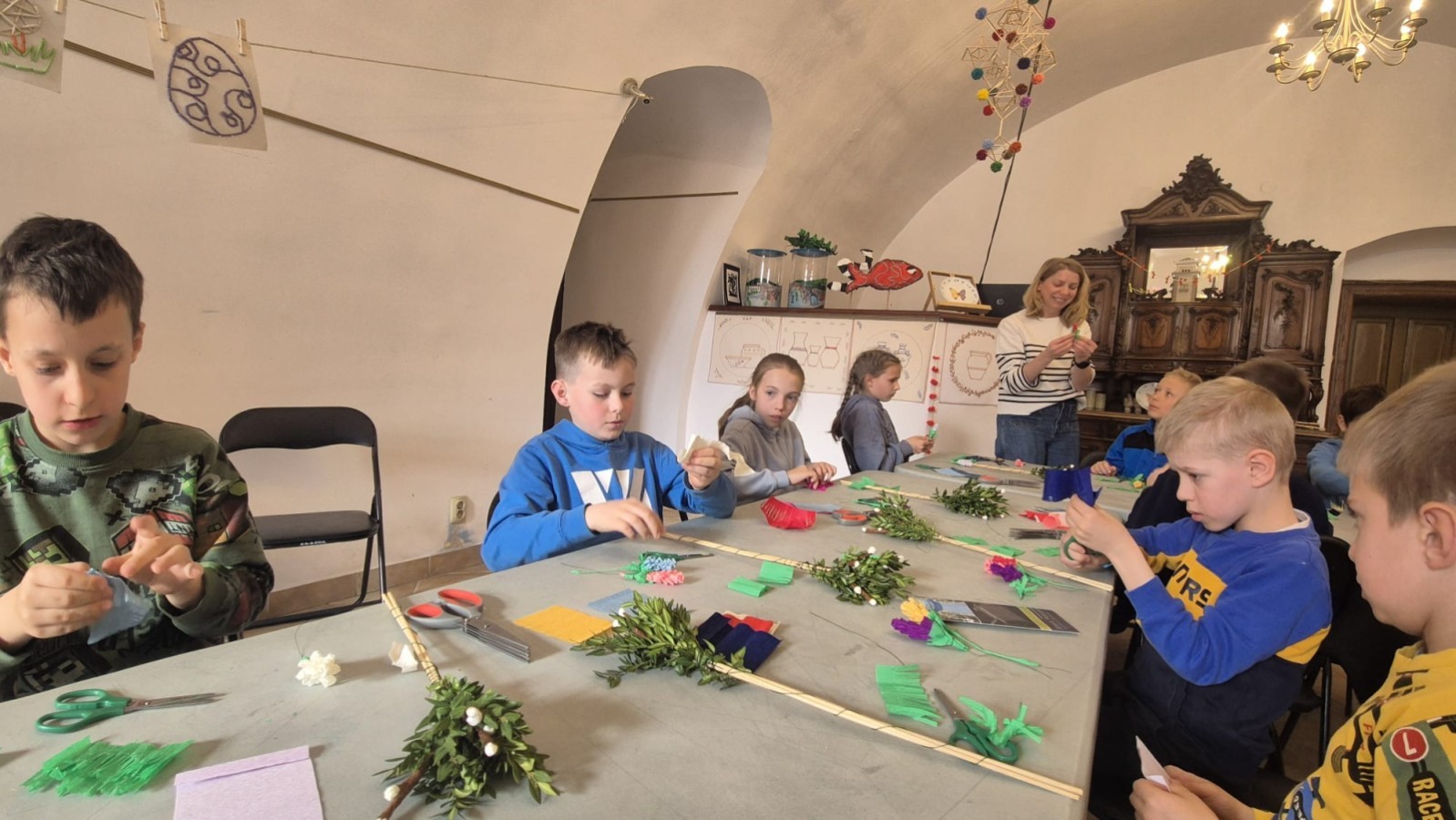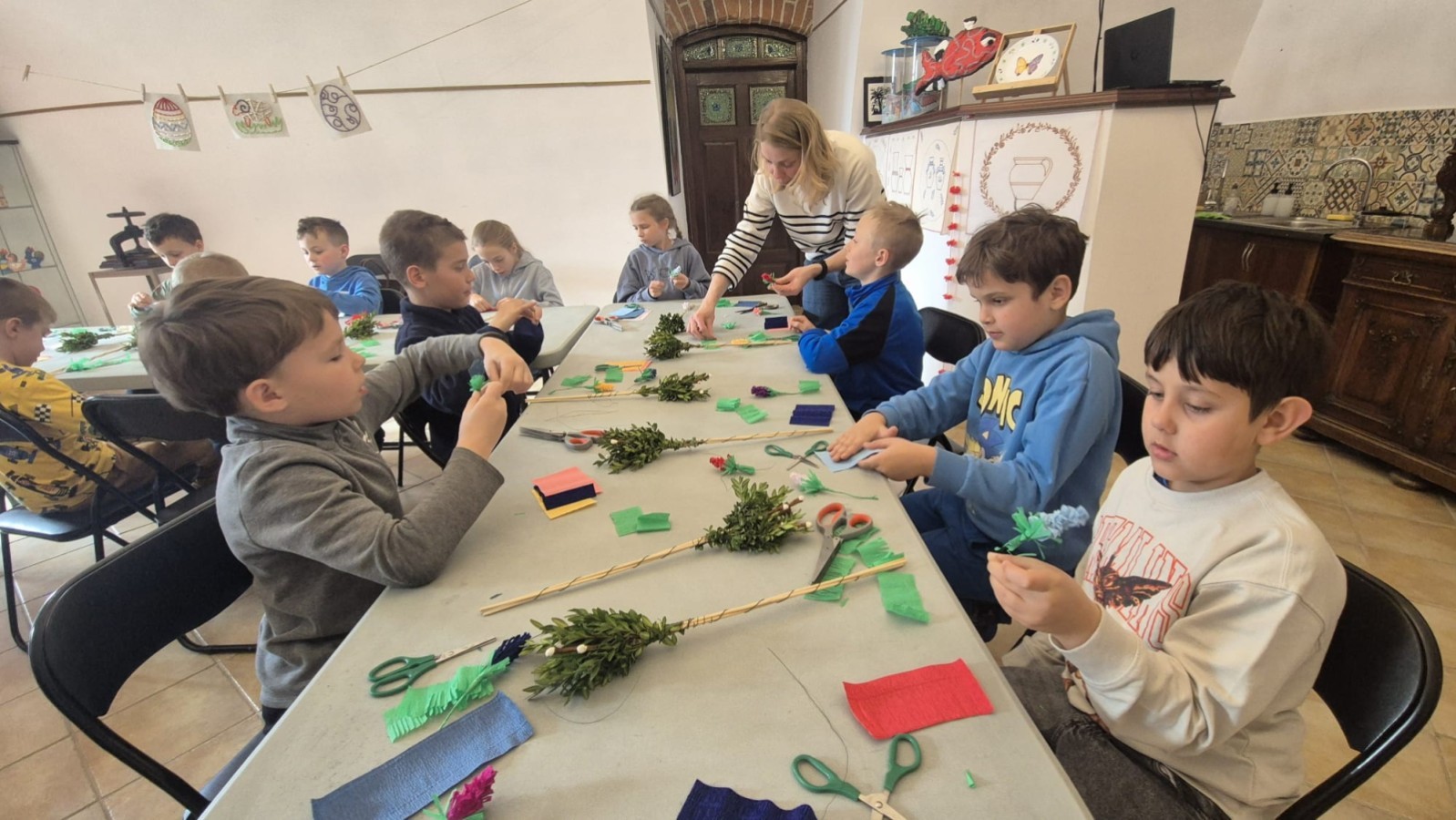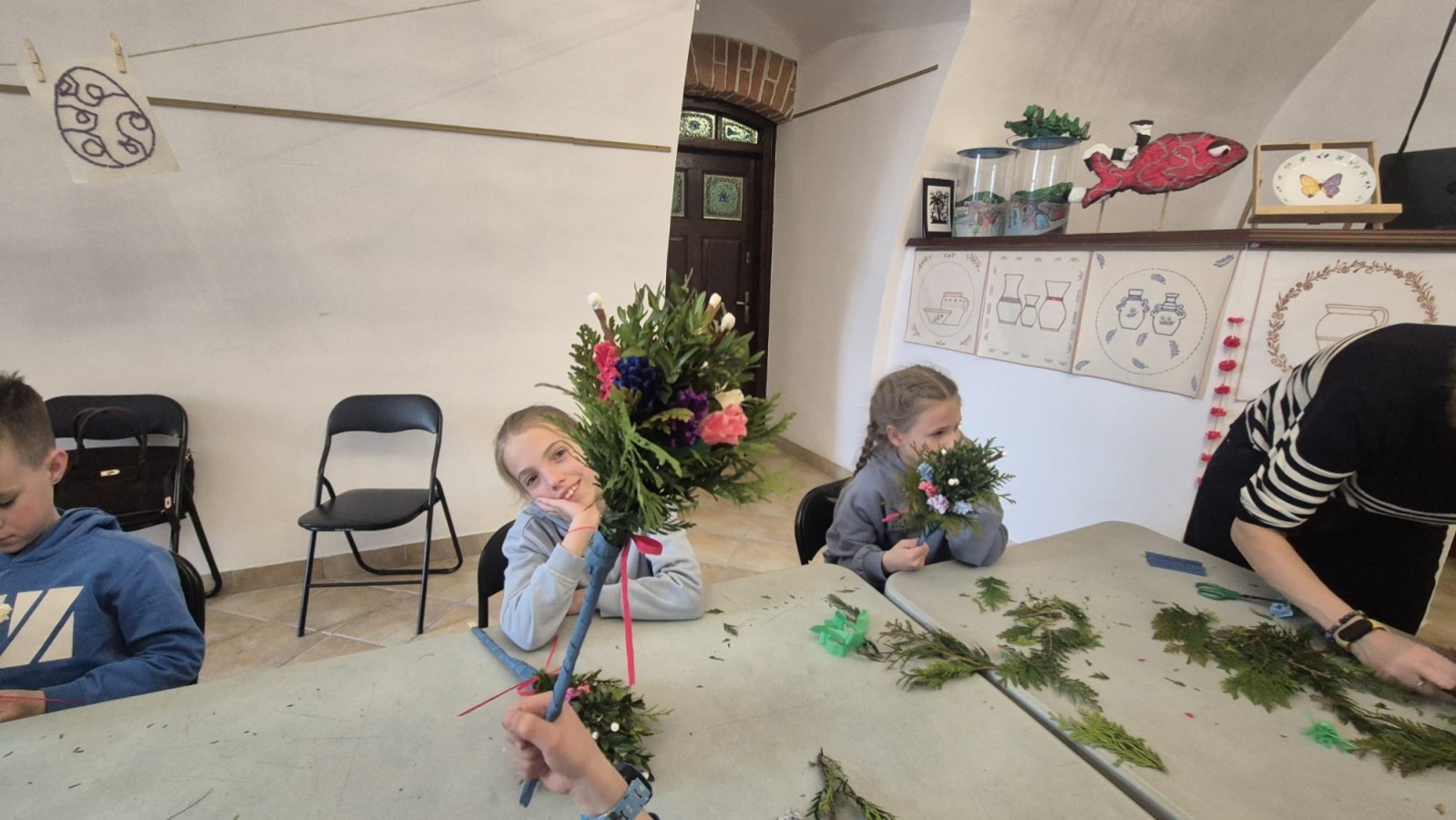 Uczniowie klasy 3d podczas zajęć na Zamku Sułkowskich zostali zapoznani z tradycjami i zwyczajami związanymi ze świętami wielkanocnymi. Poznali znaczenie kultywowania tradycji oraz ich rolę w zachowaniu dziedzictwa kulturowego. W trakcie warsztatów wykonali palmy wielkanocne zgodnie ze sztuką ludową.