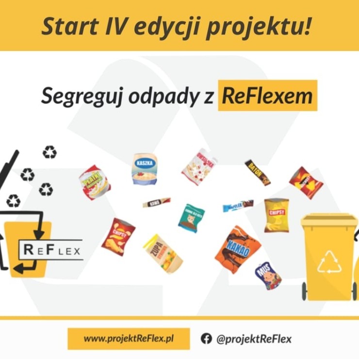 Nasza szkoła bierze udział w projekcie edukacyjnym "Segreguj z ReFlexem". Jego celem jest nauka prawidłowej segregacji odpadów po produktach, których używamy na co dzień i pokazanie, jak można dać im "drugie życie" - więcej na www.projektreflex.pl.