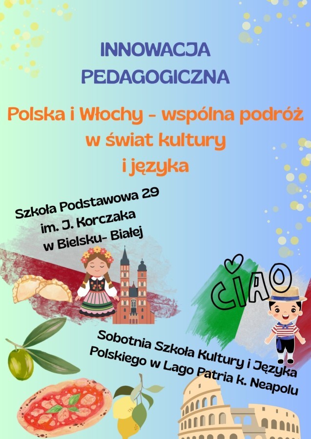 Nasza szkoła bierze udział w innowacji pedagogicznej: „Polska – Włochy - wspólna podróż w świat kultury i języka”.